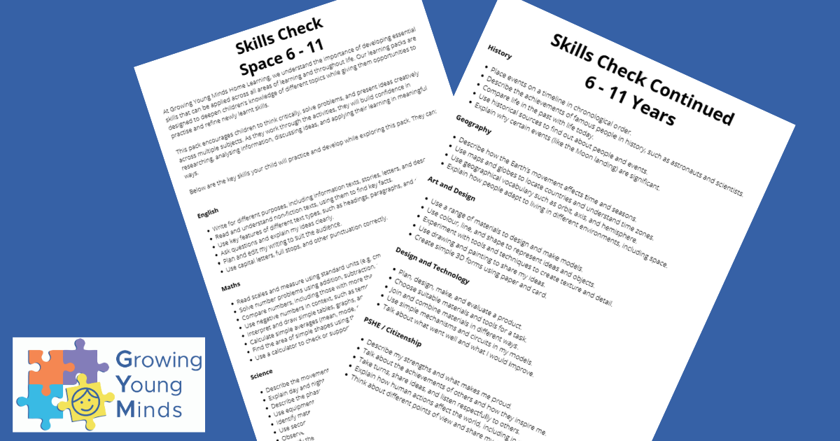 Each pack also includes the key skills covered, helping you track and talk about learning as you go.